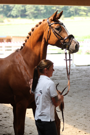 Da dies ein kleinerer Termin war, nutzten wir die Gelegenheit, dem Publikum die Verbandsstrukturen zu erklären und vor allem Einblicke in das Tätigkeitsfeld einer Musterungskommission zu geben, beschrieben die Abzeichenaufnahme und die Notenfindung. Wir gingen maßgeblich auf das Zuchtprogramm des Trakehner Verbandes ein und erläuterten hier vor allem die Punkte Zuchtziel und Grundgangarten.