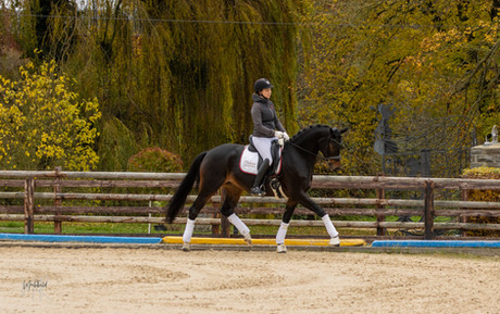 Seinerzeit bei ihrer Eintragung Reservesiegerin des Zuchtbezirks Rheinland-Pfalz / Saar, ist sie zwischenzeitlich hocherfolgreich in Dressurpferdeprüfungen der Kl. M und befindet sich unter Roxana Noack (ehemals Mohr) auf bestem Weg zur Kl. S.
